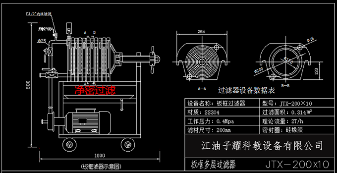 滤板采用平面螺纹网状形,结构先进,不变形,容易清洗,能有效地增长各种滤膜的使用寿命,从而降低和节约生产成本,本机配备之不锈钢加压泵,其配用电机小,耗电省。